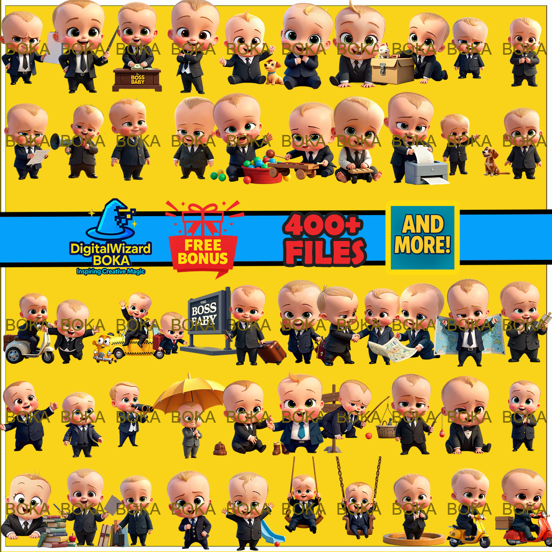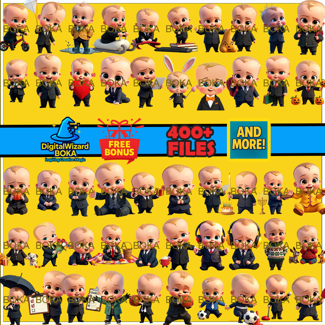 Boss Baby Chibi Clipart Bundle – 350 PNG – Funny Baby in Suit Poses – Transparent Background
