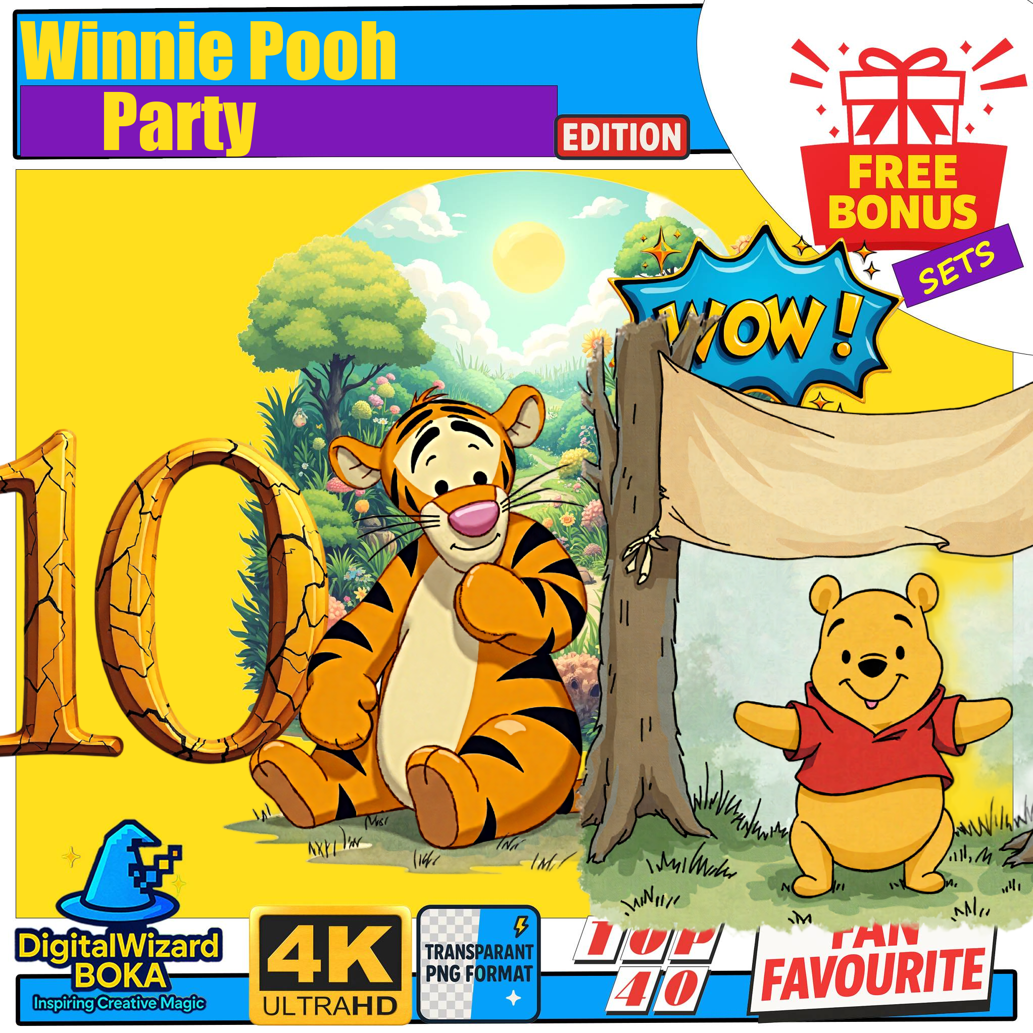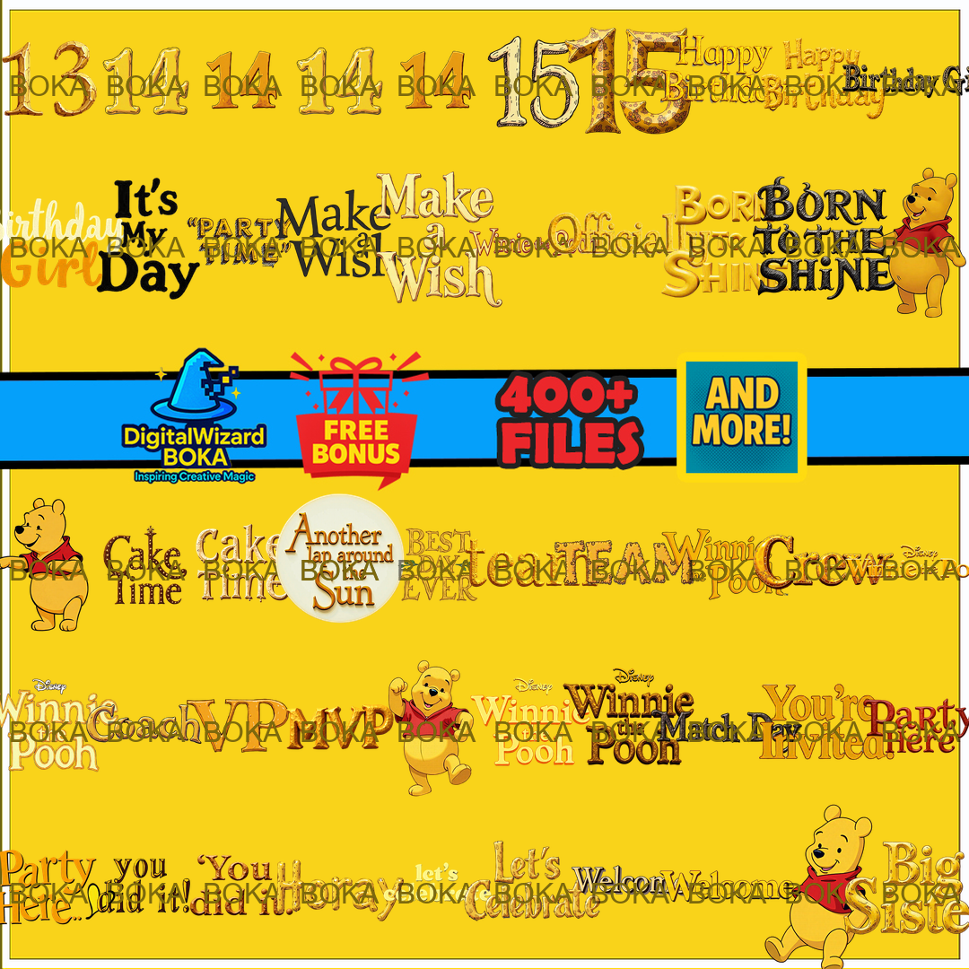 Winnie the Pooh Birthday Chibi Clipart Bundle – 300 PNG – Pooh Tigger Piglet Eeyore – Transparent PNG
